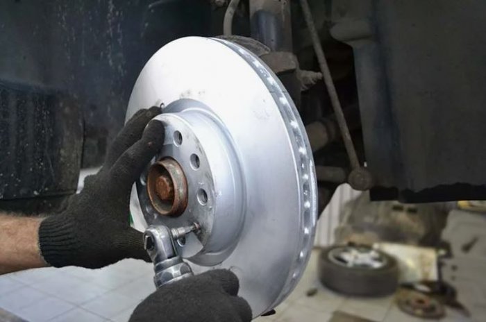 - При внешнем осмотре вы видите, что колодки неплотно прилегают к диску, при это замечаете колею на поверхности диска;